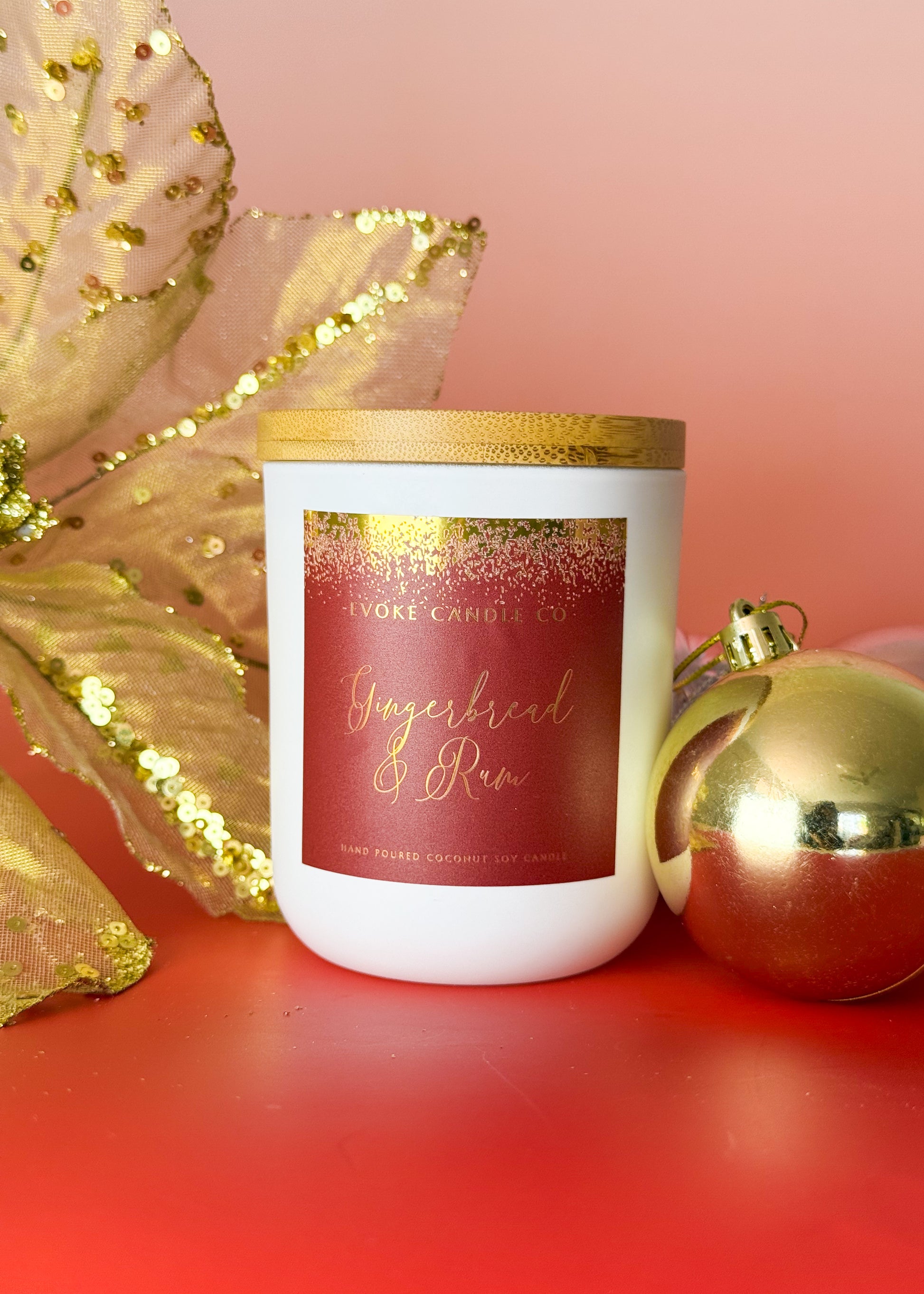 Gingerbread & Rum combines zesty citrus, warm spices, and rich vanilla for a cozy, festive scent that fills your space with holiday cheer.